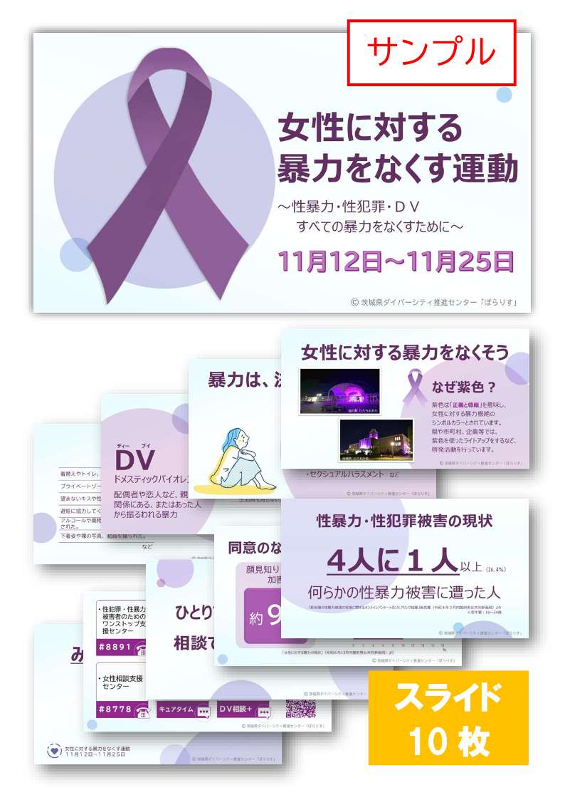 市町村の男女共同参画及び、DV相談等を所管する部署等で啓発活動を行う際に、印刷配布・掲示等で活用いただけます。詳細については、